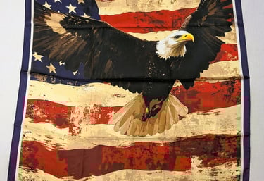 Accessories can transform an outfit, and this satin silk-feel scarf does just that. Featuring a beautifully detailed American eagle, it makes a stylish and meaningful statement.