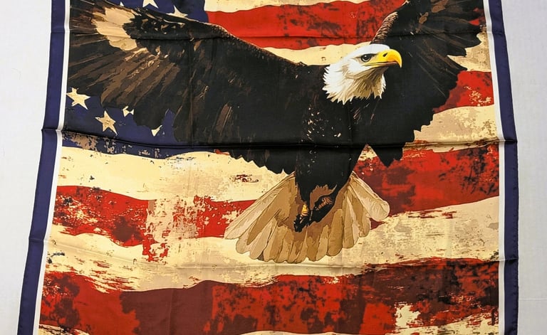Elegant, lightweight scarf with a bold American eagle design—perfect for holidays or everyday flair.